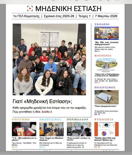 Το 1ο ΓΕΛ Κομοτηνής, με τη σχολική εφημερίδα «Μηδενική Εστίαση», κατέκτησε την 1η θέση!