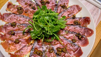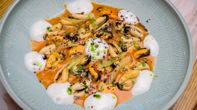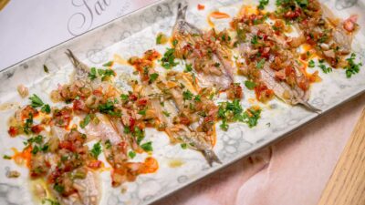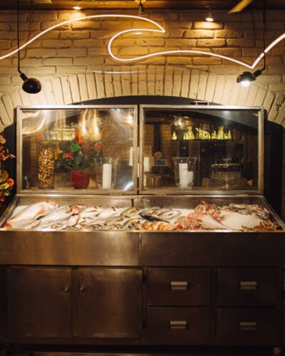 Ο συνδυασμός ζυμαρικών με θαλασσινό έχει ενδιαφέρον: τα μαύρα ταλιολίνι με μελάνι σουπιάς συνδυάζονται ωραία με ψίχα από ελληνικό μπλε καβούρι Κατερίνης, ντομάτα, κανθαρέλες και θερινές τρούφες. Τα μικρόψαρα έχουν την τιμητική τους: σαρδέλες παντρεμένες, γαυράκι πανέ τηγανισμένο με κρεμμύδια ή πληθωρικός γαύρος μαρινάτος.