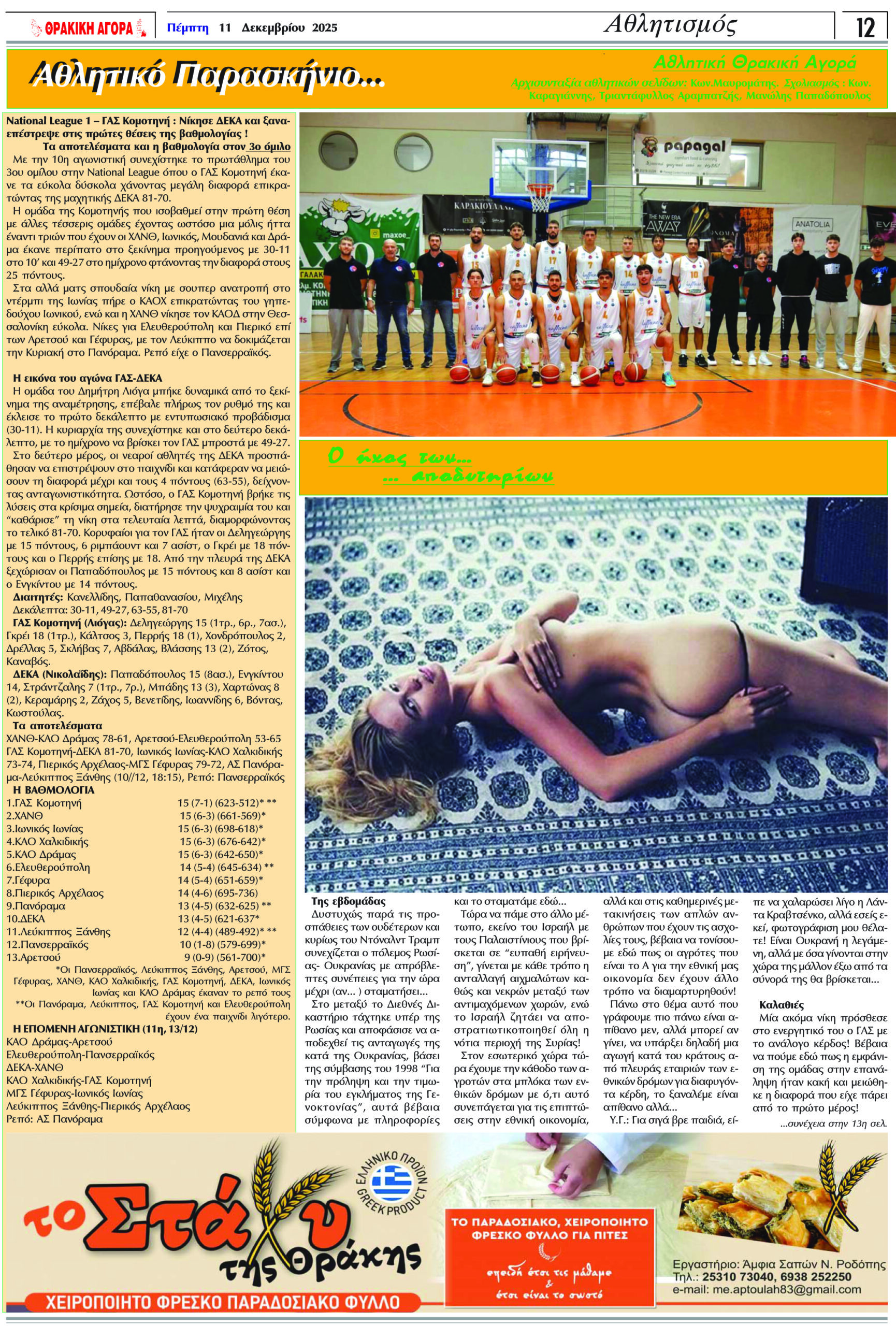 ΘΡΑΚΙΚΗ ΑΓΟΡΑ : 11-12-2025