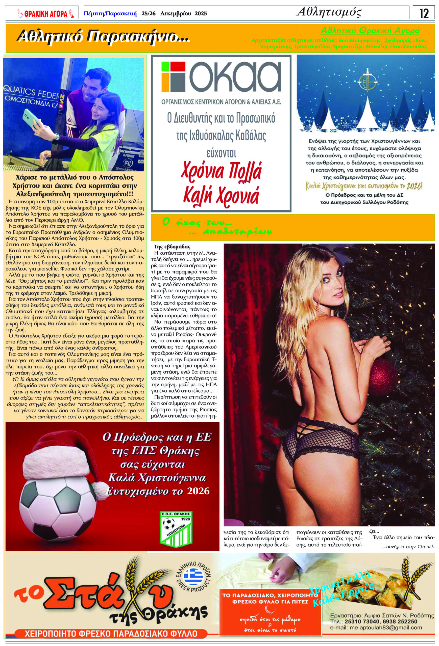 ΘΡΑΚΙΚΗ ΑΓΟΡΑ : 25/26-12-2025
