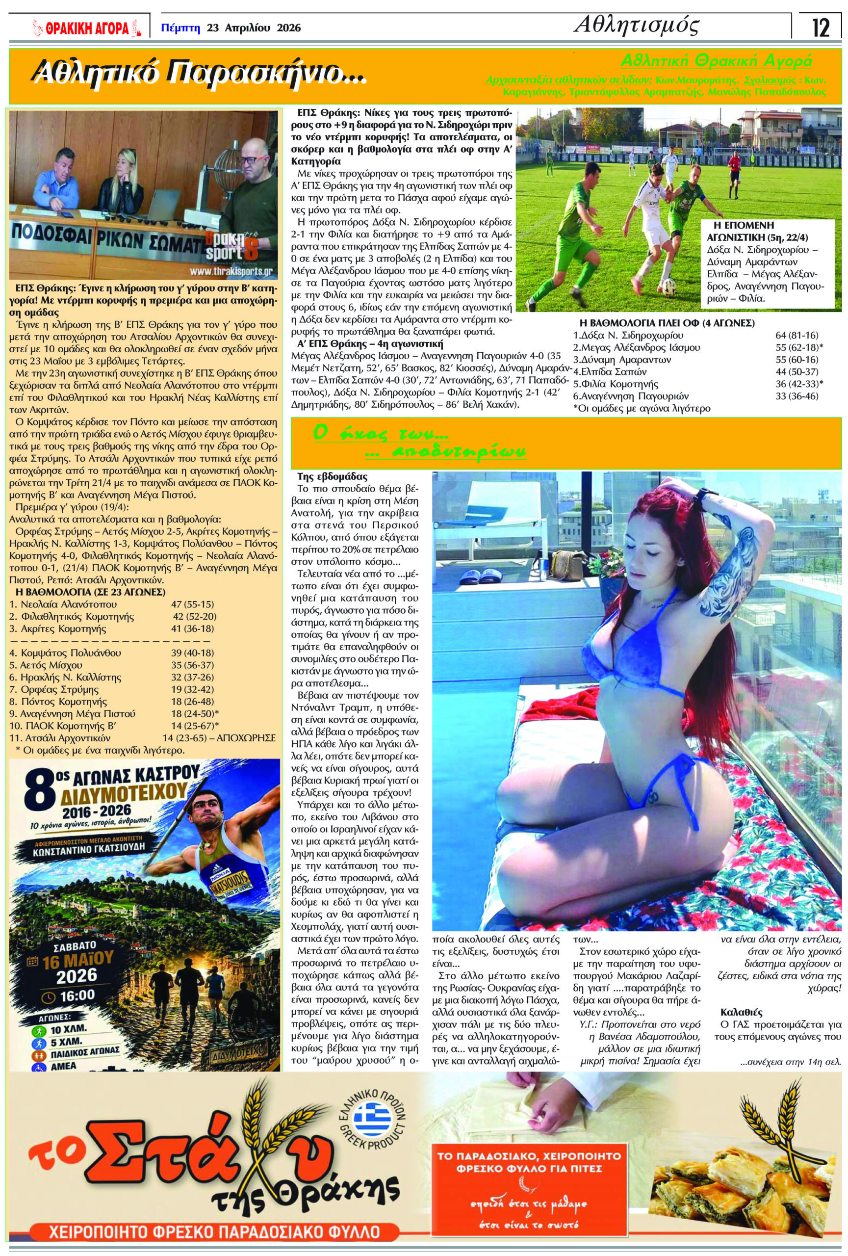 ΘΡΑΚΙΚΗ ΑΓΟΡΑ : 23 Απριλίου 2026