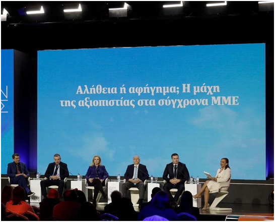 Ο Γενικός Γραμματέας Επικοινωνίας και Ενημέρωσης αναφέρθηκε μεταξύ άλλων στα ευρήματα της έρευνας Marc «Αναζητώντας την αλήθεια» (Alitheia Forum, Μάρτιος 2026): Τα μέσα κοινωνικής δικτύωσης ξεπέρασαν για πρώτη φορά την τηλεόραση ως κύρια πηγή ενημέρωσης (37% τα social media έναντι 36% της τηλεόρασης), ενώ εννιά στους δέκα πολίτες θεωρούν τα fake news απειλή για τη Δημοκρατία. Σε αυτό το «περιβάλλον ευαλωτότητας της αξιοπιστίας», τόνισε, «η κυβέρνηση Κυριάκου Μητσοτάκη έχει λάβει σαφή θέση: στηρίζουμε το οικοσύστημα των μέσων ενημέρωσης ως τη βασική πυξίδα αξιοπιστίας και ενημέρωσης των πολιτών».