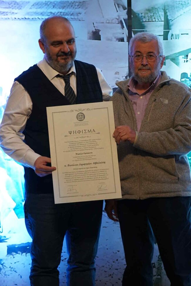 Στο πρώτο μέρος της βραδιάς δώσαμε σάρκα και οστά με πανηγυρικό τρόπο στην ομόφωνη απόφαση που έλαβε πρόσφατα το Δημοτικό Συμβούλιο της Κομοτηνής για την ανακήρυξη σε επίτιμο Δημότη Κομοτηνής του Βασίλη Δημητρίου Αϊβαλιώτη. Του ανθρώπου που αγάπησε τον Τσανακλή πριν από όλους μας. Που συνέλλεξε με απαράμιλλο νοιάξιμο και περισσή φροντίδα τρυφερότητας τα τεκμήρια των διαδρομών του. Και αποφάσισε πριν από λίγα χρόνια να τα δωρίσει στη γενέτειρα του Νέστορά μας, για να φωλιάσουν μαζί με την αύρα της μνήμης του για πάντα εδώ, στο Τσανάκλειο Μέγαρο, στο σπίτι του, όπως ο Βασίλης συνηθίζει να το αποκαλεί.