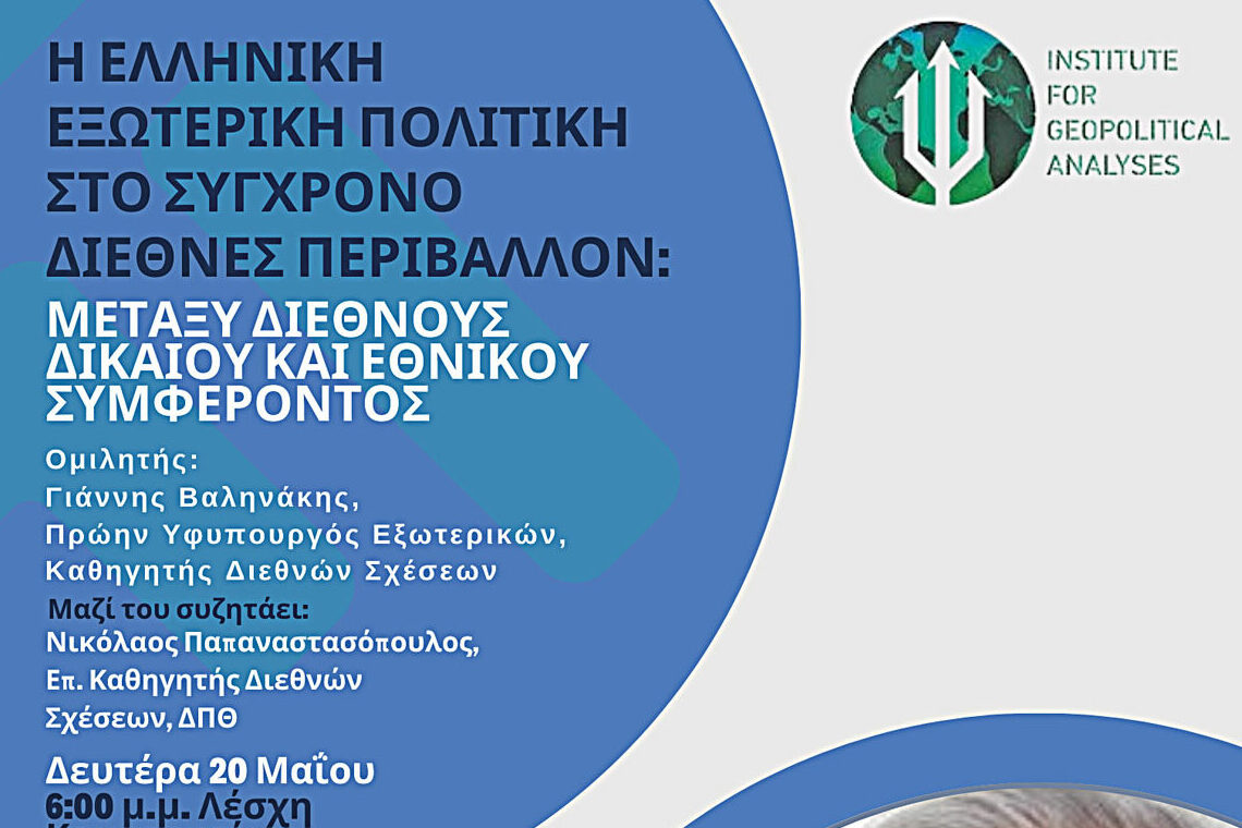 «Η ελληνική εξωτερική πολιτική στο σύγχρονο διεθνές περιβάλλον: μεταξύ διεθνούς δικαίου και εθνικού συμφέροντος» και προσκεκλημένους τους: τ. υφυπουργό Εξωτερικών και Καθηγητή Διεθνών Σχέσεων, Γιάννη Βαληνάκη και Νικόλαο Παπαναστασίου, επικ. Καθηγητή Διεθνούς Πολιτικής του Τμήματος Πολιτικής Επιστήμης του ΔΠΘ.