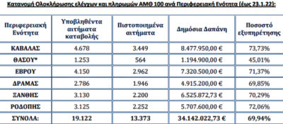 - Πληρώθηκαν τα 2.295 αιτήματα με καταβληθείσα Δημόσια Δαπάνη 5.765.350,00 ευρώ που αφορούσαν ολοκληρωμένους ελέγχους έως 31/12/21