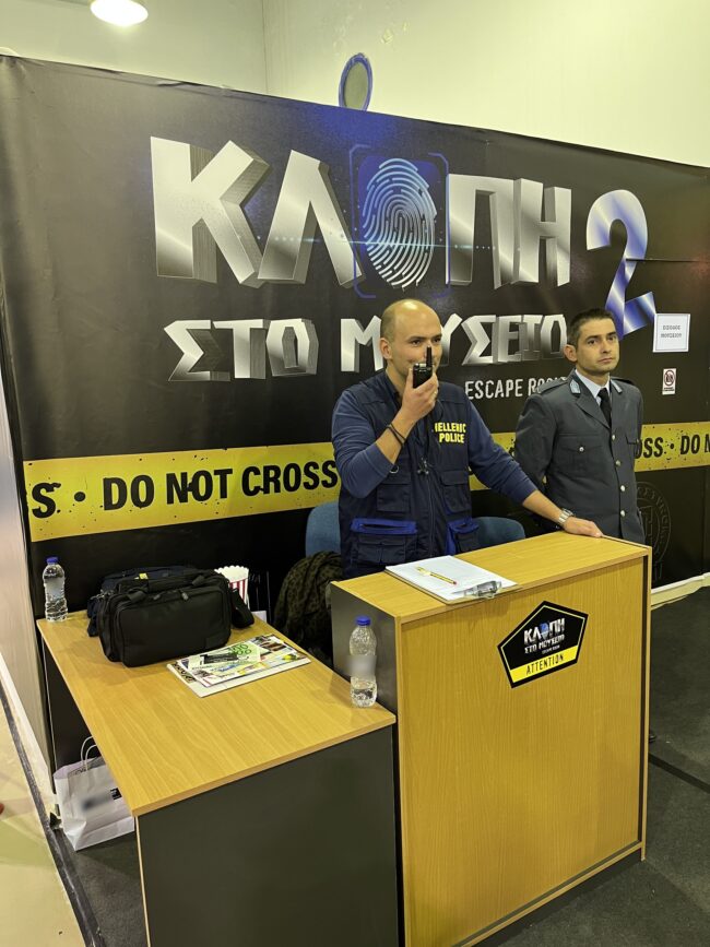 Ιδιαίτερο ενδιαφέρον παρουσιάζει το “escape room”, το οποίο έχει σχεδιαστεί από τη Διεύθυνση Εγκληματολογικών Ερευνών και προσφέρει στους συμμετέχοντες τη μοναδική εμπειρία να ερευνήσουν μια σκηνή εγκλήματος, χρησιμοποιώντας επιστημονικές μεθόδους και τεχνικές εγκληματολογίας.