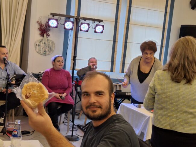 Παρουσία όλων αυτών πραγματοποιήθηκε η κοπή της πρωτοχρονιάτικης πίτας, η οποία συνοδεύτηκε από πλούσιο μενού και οίνο από τη γη των Κικόνων και φυσικά ζωντανή μουσική στο οικογενειακό κέντρο διασκέδασης “Αλλοτινό”