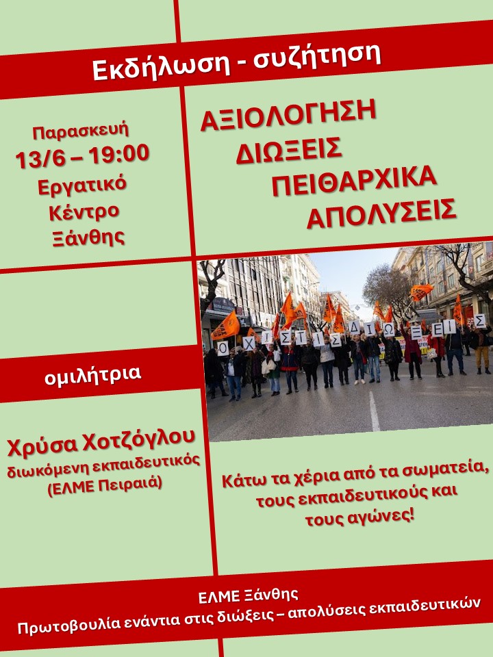 εκδήλωση που συνδιοργανώνουν η ΕΛΜΕ Ξάνθης και η Πρωτοβουλία ενάντια στις