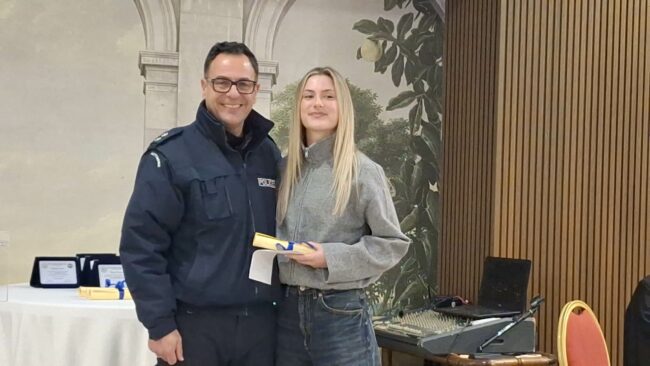 Στη συνέχεια έγινε απονομή από την Ε.Α.Υ. Ροδόπης σε συνεργασία με το Τοπικό Παράρτημα της I.R.A. (Διεθνής Ένωση Αστυνομικών) Νομού Ροδόπης, βραβείων στα παιδιά των αστυνομικών-μελών τους που πέτυχαν την εισαγωγή τους στην Τριτοβάθμια Εκπαίδευση στις Πανελλαδικές Εξετάσεις του 2025.