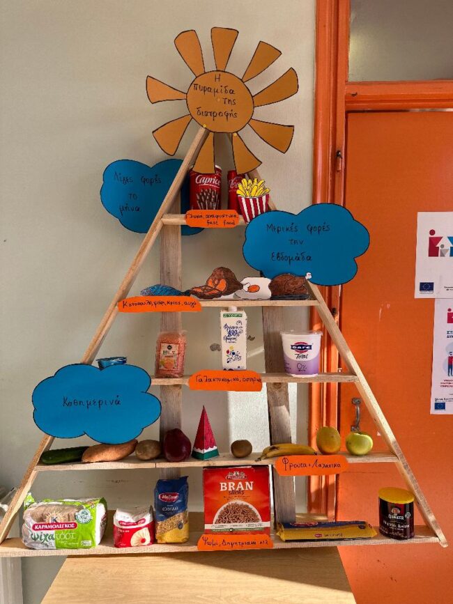 Μέσα από παιχνίδια, ομαδικές δραστηριότητες, ζωγραφική και αφήγηση παραμυθιού, τα παιδιά είχαν την ευκαιρία να γνωρίσουν τις ομάδες τροφών, να κατανοήσουν πώς συμβάλλει η διατροφή στην υγεία και την ανάπτυξή τους και να δημιουργήσουν το δικό τους «πιάτο υγιεινής διατροφής».