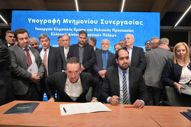 ΕΛΛΗΝΙΚΟ ΔΙΚΤΥΟ ΑΝΘΕΚΤΙΚΩΝ ΠΟΛΕΩΝ – Γιορτή της Αυτοδιοίκησης: 150 Δήμαρχοι υπέγραψαν Μνημόνιο Συνεργασίας με τον Υπουργό Κλιματικής Κρίσης και Πολιτικής Προστασίας