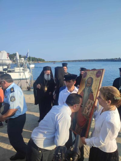 Με συγκίνηση και μεγαλοπρέπεια η τοπική εκκλησία, αρχές, φορείς και πιστοί υποδέχθηκαν, το απόγευμα της Τρίτης 4 Ιουλίου, την Ιερή και Θαυματουργή Εικόνα του Αγίου Ιερομάρτυρος Χαραλάμπους η οποία μεταφέρθηκε με σκάφος στο λιμάνι της Μαρώνειας και της αποδόθηκαν τιμές από στρατιωτικό άγημα.