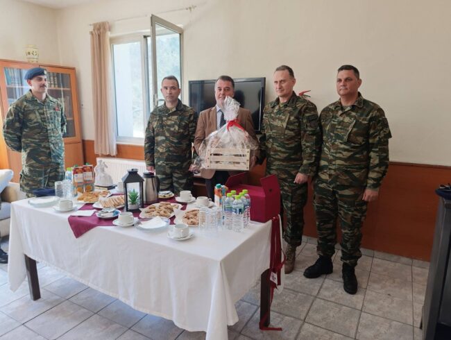 Ως ελάχιστη ένδειξη σεβασμού και ευγνωμοσύνης, παρέδωσα ένα πασχαλινό καλάθι με τοπικά προϊόντα, προσφορά του Συλλόγου “Αξίζω”. Ένα μικρό δώρο, που όμως συμβολίζει τη μεγάλη αναγνώριση και την έμπρακτη στήριξη της κοινωνίας προς αυτούς που φρουρούν τον τόπο μας.