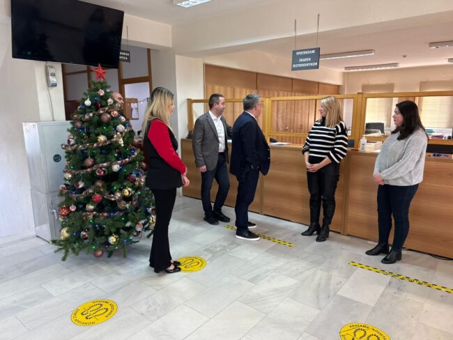 Στη συνέχεια, ο Δήμαρχος ξενάγησε τον κ. Γαλαμάτη στους χώρους και τα γραφεία του Δήμου, ενώ κατά τη διάρκεια της επίσκεψης ο Γραμματέας συνομίλησε με τους προϊσταμένους των υπηρεσιών και ενημερώθηκε από αυτούς για το έργο και τις δυσκολίες που αντιμετωπίζουν στην καθημερινή λειτουργία τους.