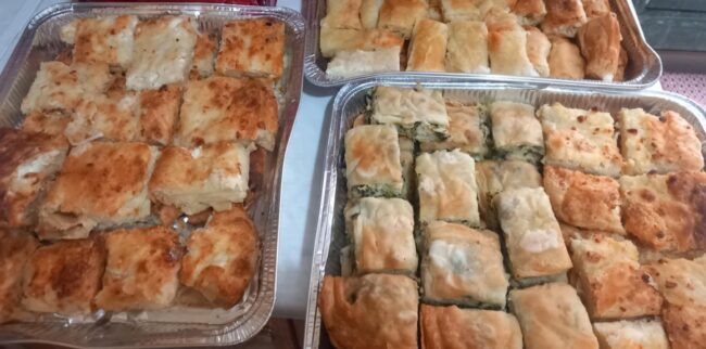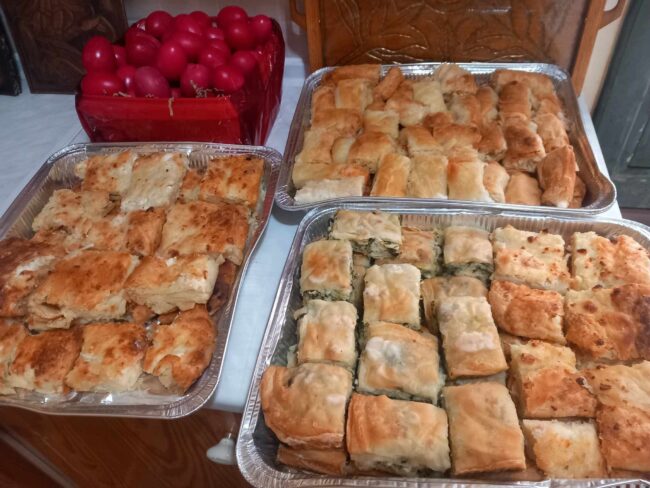Μέλη του Συλλόγου με τον Πρόεδρο, κ. Γεώργιο Νάκο, τον Αντιπρόεδρο κ. Μπίκο Νικόλαο και την Ταμία κ. Μπίκου Γιάννα προσέφεραν στους ωφελούμενους και το προσωπικό σαρακατσάνικα εδέσματα με άρωμα πασχαλινό. Ένα καλάθι βαμμένα κόκκινα αυγά και παραδοσιακές σαρακατσάνικες τυρόπιτες και λαχανόπιτες, οι οποίες παρασκευάσθησαν, στα Σεμινάρια Ζημωμάτων στην Πολιτιστική Στέγη του Συλλόγου, από τις κυρίες μέλη του Συλλόγου και τις Δωρεές τοπικών Εμπόρων.