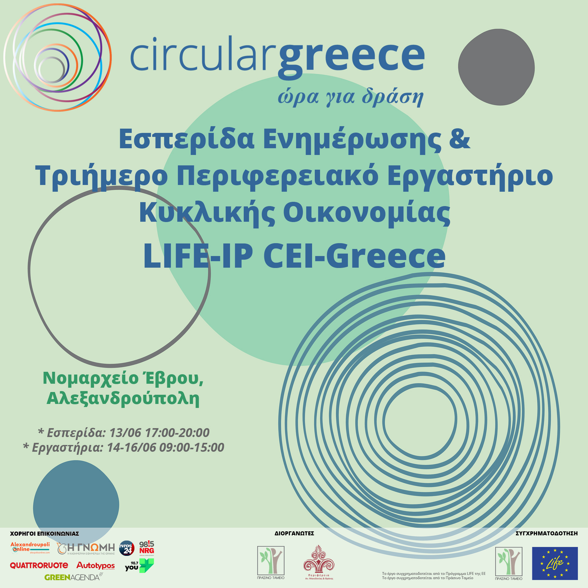 Περισσότερες πληροφορίες για το LIFE-IP CEI-Greece είναι διαθέσιμες στην ιστοσελίδα μας www.circulargreece.gr και τα μέσα κοινωνικής δικτύωσης: