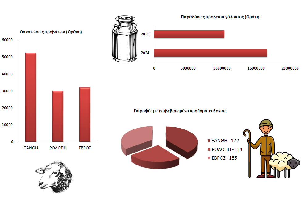 Στη Θράκη, το απολεσθέν κτηνοτροφικό εισόδημα συνεχίζει να μεγαλώνει (με τις όποιες επιπτώσεις έχει στην τοπική οικονομία). 1/3 εστίες επιβεβαιωμένων κρουσμάτων (35,5%) βρίσκεται στους νομούς Ξάνθης, Ροδόπης & Έβρου. Στο σύνολο 438 οικογένειες έχουν χάσει το εισόδημα τους και όσο κυλάει ο χρόνος χάνουν και την ελπίδα τους.