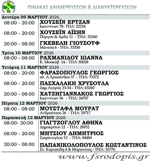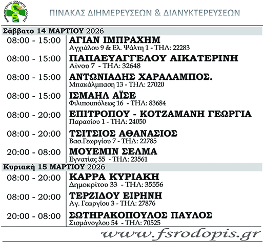 ΑΡΧΙΚΗΚΟΙΝΩΝΙΑΕΙΔΗΣΕΙΣΦαρμακεία (09-15 Μαρτίου) ΘΡΑΚΙΚΗ ΑΓΟΡΑ9 Μαρτίου, 2026 10:15 πμ ΚΑΤΗΓΟΡΙΑ ΕΙΔΗΣΕΙΣΚΟΙΝΩΝΙΑΤΟΠΙΚΗ ΑΥΤΟΔΙΟΙΚΗΣΗΥΓΕΙΑΦΑΡΜΑΚΕΙΑ Μοιραστείτε τό