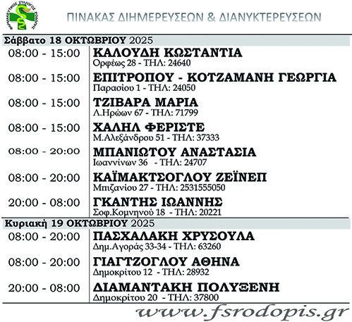 ΑΡΧΙΚΗΚΟΙΝΩΝΙΑΕΙΔΗΣΕΙΣΦαρμακεία (13 – 19 Οκτ.) ΘΡΑΚΙΚΗ ΑΓΟΡΑ13 Οκτωβρίου, 2025 7:46 πμ ΚΑΤΗΓΟΡΙΑ ΕΙΔΗΣΕΙΣΚΟΙΝΩΝΙΑΤΟΠΙΚΗ ΑΥΤΟΔΙΟΙΚΗΣΗΥΓΕΙΑΦΑΡΜΑΚΕΙΑ Μοιραστείτε τό