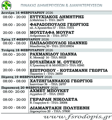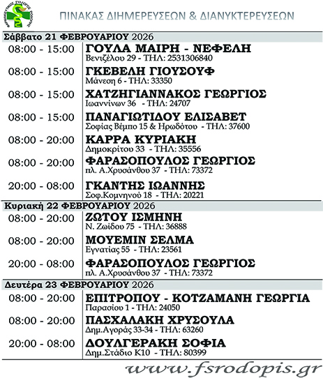 ΑΡΧΙΚΗΚΟΙΝΩΝΙΑΕΙΔΗΣΕΙΣΦαρμακεία (16-23 Φεβ.) ΘΡΑΚΙΚΗ ΑΓΟΡΑ16 Φεβρουαρίου, 2026 7:46 πμ ΚΑΤΗΓΟΡΙΑ ΑΝΑΤΟΛΙΚΗ ΜΑΚΕΔΟΝΙΑ ΚΑΙ ΘΡΑΚΗΕΙΔΗΣΕΙΣΚΟΙΝΩΝΙΑΥΓΕΙΑΦΑΡΜΑΚΕΙΑ Μοιραστείτε τό