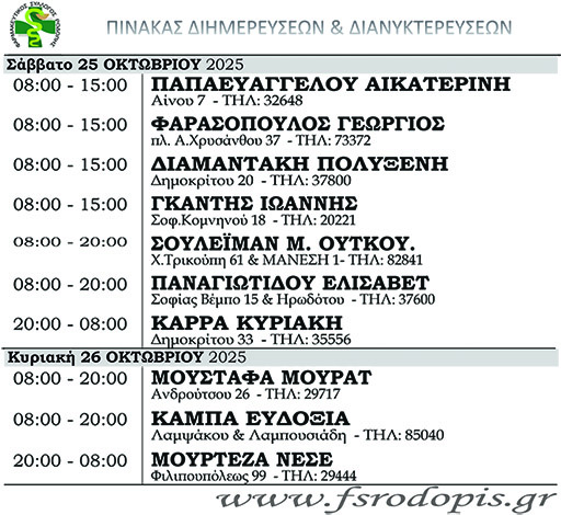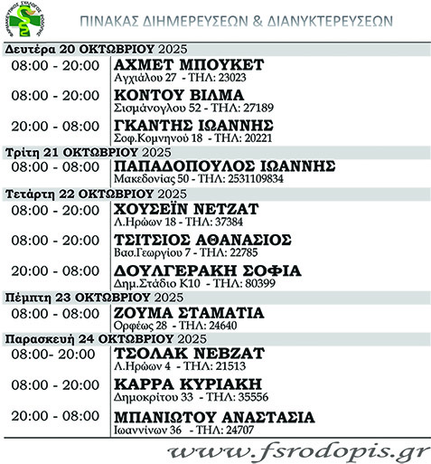 ΑΡΧΙΚΗΚΟΙΝΩΝΙΑΕΙΔΗΣΕΙΣΦαρμακεία (20-26 Οκτ.) ΘΡΑΚΙΚΗ ΑΓΟΡΑ20 Οκτωβρίου, 2025 7:46 πμ ΚΑΤΗΓΟΡΙΑ ΕΙΔΗΣΕΙΣΚΟΙΝΩΝΙΑΤΟΠΙΚΗ ΑΥΤΟΔΙΟΙΚΗΣΗΥΓΕΙΑΦΑΡΜΑΚΕΙΑ Μοιραστείτε τό