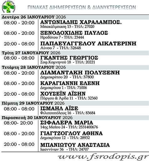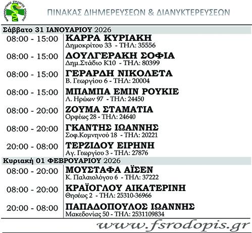 Φαρμακεία (26 Ιαν-01 Φεβ.)