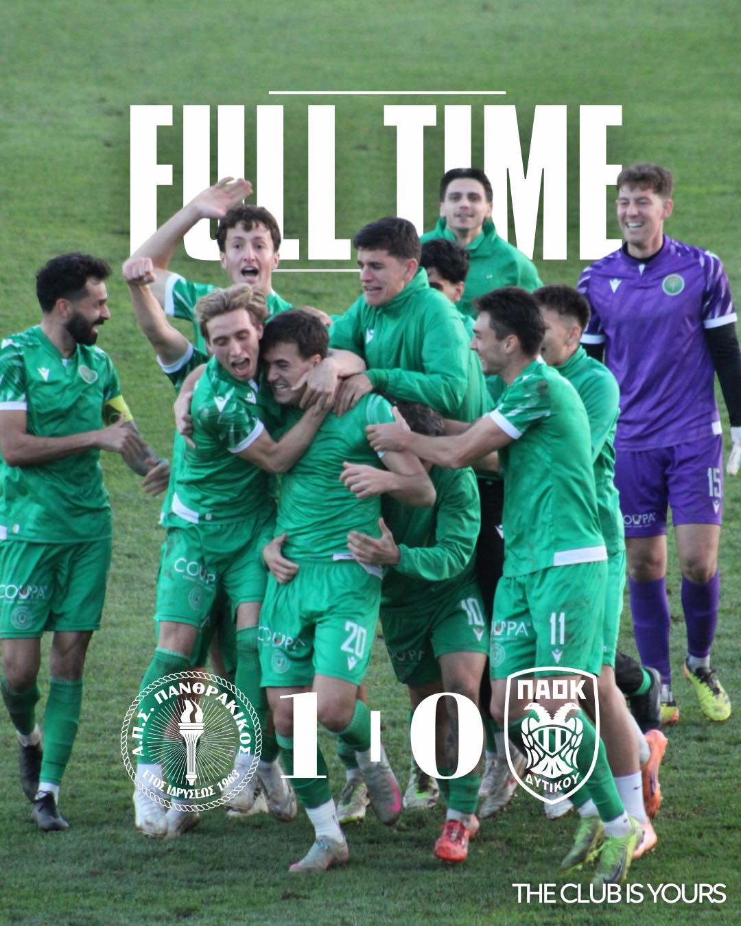 Ο Πανθρακικός πήρε μία πολύτιμη νίκη με 1-0 απέναντι στον ΠΑΟΚ Δυτικού για την 10η αγωνιστική της Γ΄ Εθνικής στο ΔΑΚ Κομοτηνής μπροστά σε 1000 φίλους της ομάδας που βρέθηκαν για μία ακόμα Κυριακή στο πλευρό της ομάδας μας.