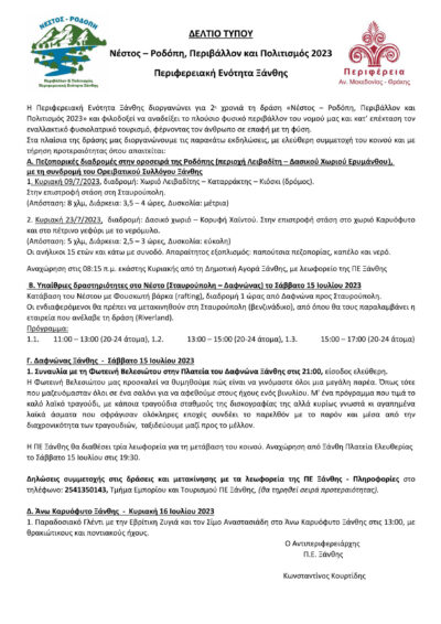 ΑΡΧΙΚΗΚΟΙΝΩΝΙΑΑΝΑΤΟΛΙΚΗ ΜΑΚΕΔΟΝΙΑ ΚΑΙ ΘΡΑΚΗΓια 2η χρονιά η Π.Ε. Ξάνθης διοργανώνει τη δράση “Νέστος-Ροδόπη, Περιβάλλον και Πολιτισμός 2023” με πλούσιες εκδηλώσεις ΘΡΑΚΙΚΗ ΑΓΟΡΑ6 Ιουλίου, 2023 9:16 μμ Φωτο: xanthidaily.gr ΚΑΤΗΓΟΡΙΑ ΑΝΑΤΟΛΙΚΗ ΜΑΚΕΔΟΝΙΑ ΚΑΙ ΘΡΑΚΗΕΚΔΗΛΩΣΕΙΣΚΑΛΛΙΤΕΧΝΙΚΑΚΟΙΝΩΝΙΑΠΕΡΙΒΑΛΛΟΝΠΟΛΙΤΙΣΜΟΣ Μοιραστείτε τό