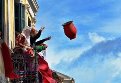 Η δεύτερη θεωρία αναφέρεται στην περίοδο των αρχαίων Ελλήνων, οι οποίοι τον Απρίλιο γιόρταζαν την αρχή της γεωργικής και βλαστικής περιόδου, πετώντας τα παλιά τους κανάτια για να γεμίσουν τα νέα με τους νέους καρπούς. Κάποιοι θα σας πουν σίγουρα στην Κέρκυρα ότι όποια και να είναι η αλήθεια, οι Κερκυραίοι αρέσκονται να ξορκίζουν το κακό με τα κανάτια τους, σημαίνοντας και τη λήξη του χειμερινού λήθαργου και την αναγέννηση της Φύσης.