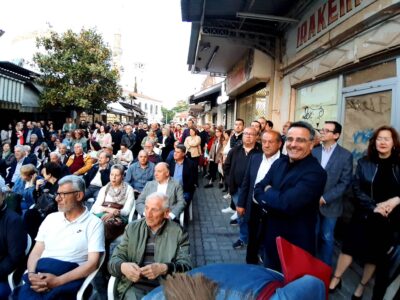 Ο κόσμος που μαζεύτηκε από νωρίς στη γνωστή εμπορική οδό της πόλης, τον χαιρετούσε και τον αγκάλιαζε, του εύχονταν καλή επιτυχία, του έλεγε πόσο τον πιστεύει και τον στηρίζει και θυμούνταν παλιότερες εποχές που τα λόγια και τα έργα των πολιτευτών στην περιοχή μας είχαν αξία και ήθος! Κι αυτός μίλησε τόσο στους παλιούς όσο και στους νέους που τον τίμησαν με την παρουσία τους, με λόγια γεμάτα ειλικρίνια και ζεστασιά, χωρίς φανφάρες και φρούδες υποσχέσεις, απλά και κατανοητά, για τον άνθρωπο, την κοινωνία, την εργασία, την πρόοδο…