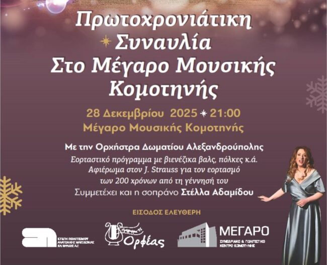 Τρίτη 23 Δεκεμβρίου 2025 και ώρα 19:30 στο ΜΕΓΑΡΟ ΜΟΥΣΙΚΗΣ ΚΟΜΟΤΗΝΗΣ