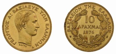 Ακόμα ένα πολύ σπάνιο νόμισμα, αυτού του Γεωργίου του πρώτου, οι 10 δραχμές του 1876, πουλήθηκε σε τιμή ρεκόρ , στις 25.000 ευρώ.