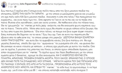 Στην πρώτη μακροσκελή του ανάρτηση, ο Γιάννης Παπαμιχαήλ, αφού εξήγησε γιατί ήταν τόσο κουρασμένος στο χθεσινό live του J2US, ξεκαθάρισε ότι εκτιμάει ιδιαίτερα τον Νίκο Κοκλώνη, όμως τόνισε ότι ένιωσε αδικημένος από τη συμπεριφορά των κριτών της επιτροπής.