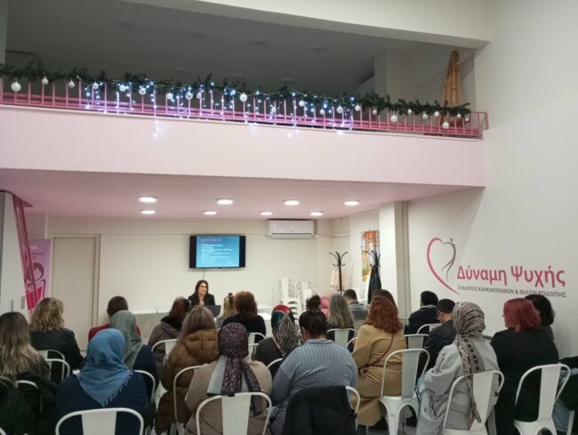 Την Παρασκευή 28 Νοεμβρίου 2025 ο Σύλλογος Καρκινοπαθών και Φίλων Ν. Ροδόπης “Δύναμη Ψυχής” διοργάνωσε ενημερωτική ομιλία για τον προσυμπτωματικό γυναικολογικό έλεγχο, από την μαιευτήρα-γυναικολόγο κ. Παπαδοπούλου Μαρία, παρουσία μαθητών του Τμήματος Νοσηλευτιικής του Εσπερινού ΕΠΑΛ Κομοτηνής.