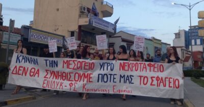 Είναι η πολιτική που δίνει αέρα σε κυβερνήσεις, κυκλώματα και διάφορες «ΜΚΟ» να εργαλειοποιούν και να κερδοσκοπούν πάνω στην ανάγκη των ανθρώπων να βρεθούν σε ένα μέρος όπου δεν θα σφυρίζουν πάνω από τα κεφάλια τους τα F-16, όπου δεν θα τους θερίζουν η φτώχεια και η καταπίεση.  Βρισκόμαστε, σήμερα εδώ γιατί η πολιτική που δημιουργεί τους υγρούς τάφους των κατατρεγμένων, είναι η ίδια πολιτική που δημιουργεί τα καθημερινά Τέμπη και στη χώρα μας. Είναι η πολιτική του κέρδους των επιχειρηματικών ομίλων που υπολογίζει τις ζωές μας ως κόστος. Δε θα συνηθίσουμε τα Τέμπη, δεν θα συνηθίσουμε τα εργοδοτικά εγκλήματα, τους θανάτους περιμένοντας ασθενοφόρο, τους πολέμους. Καταδικάζουμε την πολιτική της Ευρωπαϊκής Ενωσης και όλων των κυβερνήσεων της ΝΔ, του ΣΥΡΙΖΑ, του ΠΑΣΟΚ που την αποδέχονται σαν «ευαγγέλιο».