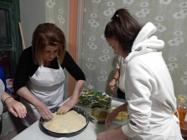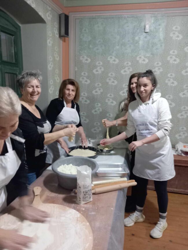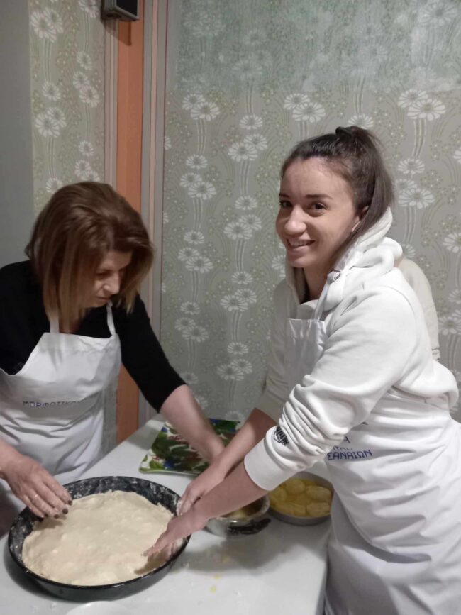 Μέλη του συλλόγου δημιούργησαν νόστιμες παραδοσιακές στριφτόπιτες, λαχανόπιτες, ρυζόπιτες και κουλιρόπιτες όλες για καλό σκοπό, γνωρίζοντας στους νεότερους την παράδοση και τη γαστρονομία της περιοχής.