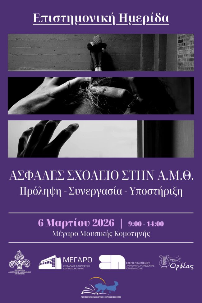 Παρασκευή 6 Μαρτίου 2026 | ώρα 9:00-14:00 στο Μέγαρο Μουσικής Κομοτηνής