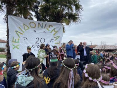 Τα Χελιδονίσματα είναι έθιμο που σηματοδοτεί την έλευση της Άνοιξης και την επιστροφή των χελιδονιών. Τα παιδιά που πλαισίωσαν το έθιμο κατάφεραν με τον ενθουσιασμό και την χαρά τους να μεταφέρουν τον ελπιδοφόρο ερχομό της Άνοιξης, να στείλουν μηνύματα αλληλεγγύης προς τους δοκιμαζόμενος από τους σεισμούς τουρκικό και συριακό λαό και να ζητήσουν να αποδοθεί δικαιοσύνη για τους νεκρούς των Τεμπών.