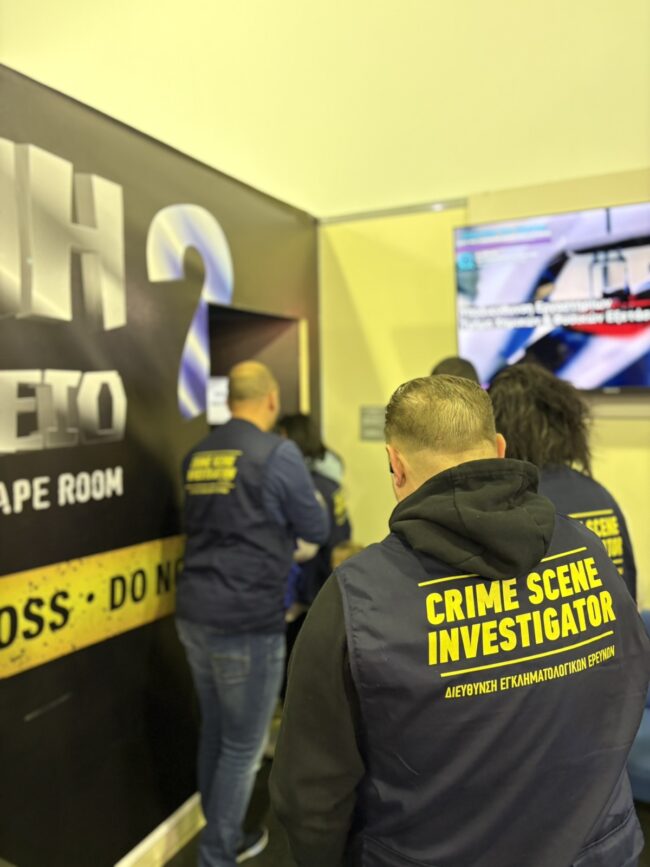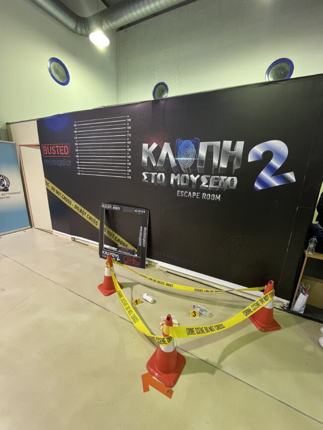 Ιδιαίτερο ενδιαφέρον παρουσιάζει το “escape room”, το οποίο έχει σχεδιαστεί από τη Διεύθυνση Εγκληματολογικών Ερευνών και προσφέρει στους συμμετέχοντες τη μοναδική εμπειρία να ερευνήσουν μια σκηνή εγκλήματος, χρησιμοποιώντας επιστημονικές μεθόδους και τεχνικές εγκληματολογίας.