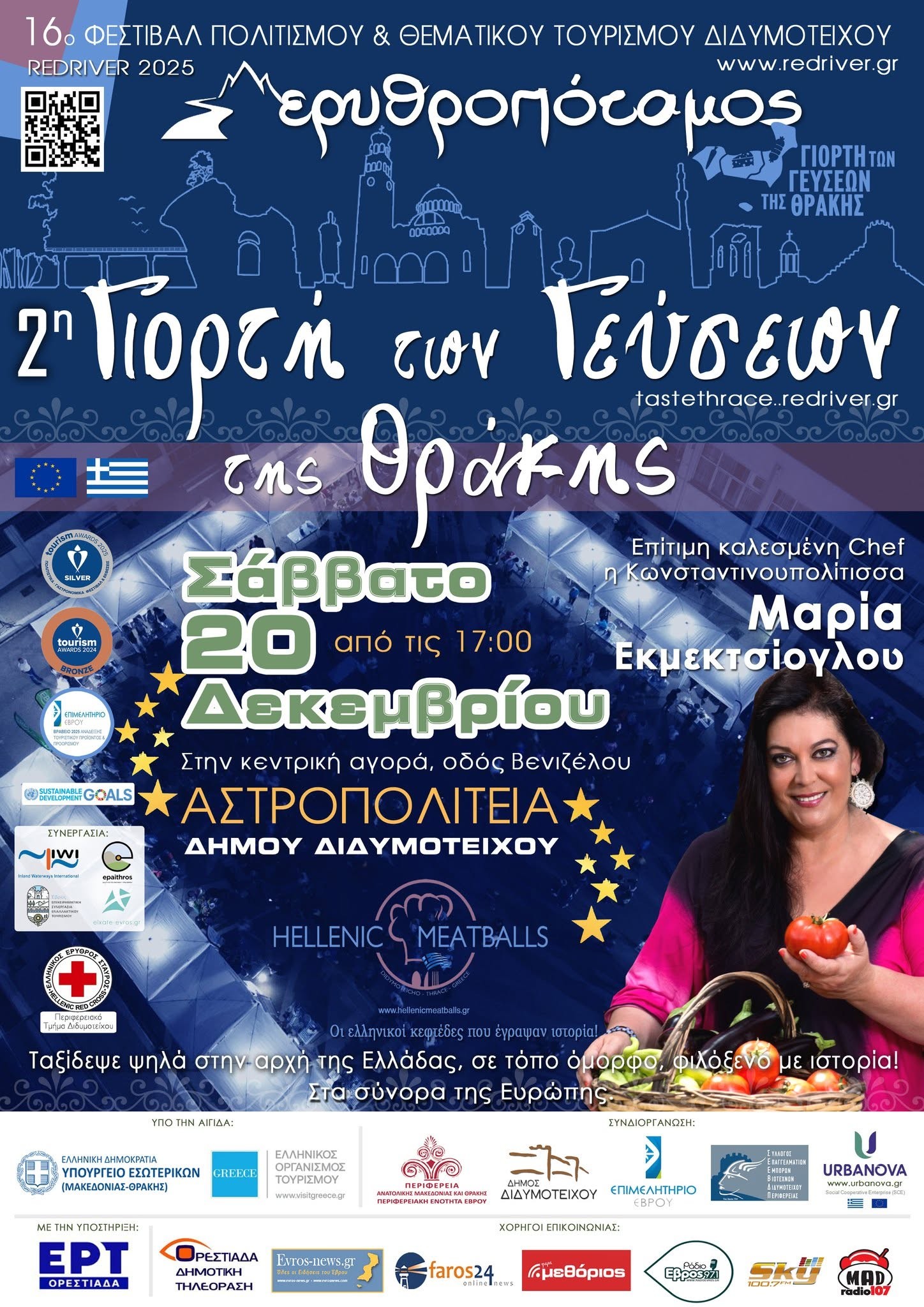 Με απόλυτη επιτυχία ολοκληρώθηκε η 2η Γιορτή Γεύσεων Θράκης & Ελληνικός Κεφτές 2025, που πραγματοποιήθηκε το Σάββατο 20 Δεκεμβρίου στο κέντρο της αγοράς του Διδυμοτείχου, στο πλαίσιο των εορταστικών εκδηλώσεων της Αστροπολιτείας του Δήμου Διδυμοτείχου.