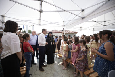 Αμέσως μετά την άφιξη του στη Θράκη ο πρωθυπουργός παρέστη στην τελετή εγκαινίων των κατασκηνώσεων της Ιεράς Μητρόπολης Μαρωνείας και Κομοτηνής, οι οποίες έχουν ενταχθεί στο Πρόγραμμα Δημοσίων Επενδύσεων. «Εμείς παρέχουμε την απαραίτητη στήριξη, τα κεφάλαια, το όραμα, το σχέδιο, έτσι ώστε η Θράκη σήμερα πραγματικά να μπορεί να πρωταγωνιστήσει σε μία Ελλάδα που αλλάζει», ανέφερε ο Κυριάκος Μητσοτάκης και παρότρυνε τα νέα παιδιά να κρατήσουν ζωντανές τις αναμνήσεις από τις εμπειρίες τους στην κατασκήνωση καθώς όπως είπε «θα είναι εμπειρίες που θα σας συνοδεύουν για μία ζωή» και παράλληλα ξεναγήθηκε στις εγκαταστάσεις.