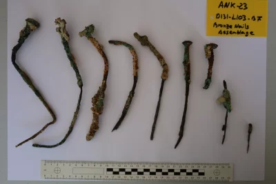 Όλα τα παραπάνω βρέθηκαν σε τομή 2χ2 μέτρων που διανοίχτηκε, στο συγκεκριμένο σημείο του ναυαγίου, περιβαλλόμενα από ένα παχύ στρώμα συσσωμάτωσης που προηγείται του ξύλινου σκαριού του πλοίου.