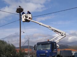 Συνεργείο έμπειρων Τεχνικών της ΔΕΗ πέρα από την αποκατάσταση των βλαβών για την κανονική ροή του ηλεκτρικού ρεύματος, κάθε χρόνο επιθεωρούν και τις πελαργοφωλιές που οι ίδιοι έχουν τοποθετήσει στους στύλους της ΔΕΗ και για την ασφάλεια της …πελαργοοικογένειας, αλλά κυρίως και για την ασφάλεια και την μη διακοπή της ηλεκτροδότησης, από βραχυκυκλώματα στους καταναλωτές.