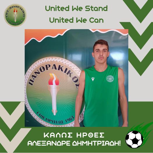 Η Διοίκηση του Πανθρακικού βρίσκεται στην ευχάριστη θέση να ανακοινώσει την έναρξη της συνεργασίας με τον ποδοσφαιριστή Αλέξανδρο Δημητριάδη.