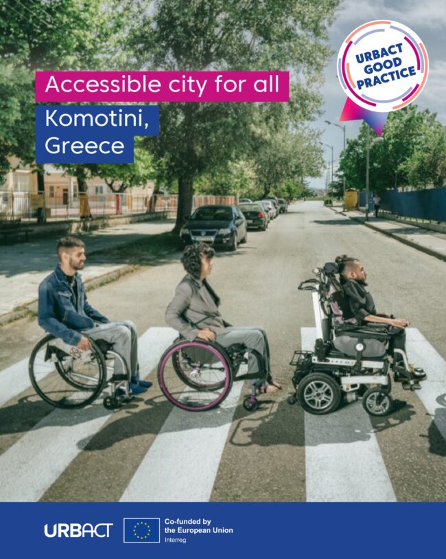 Το δίκτυο «CALL – Accessible City for ALL», με Επικεφαλής Εταίρο (Lead Partner) τον Δήμο Κομοτηνής και Δήμους- Εταίρους από όλη την Ευρώπη, όπως το Dubrovnik (Κροατία), το San Lucido (Ιταλία), το Jarosław (Πολωνία), το Associação Pentágono Urbano (Πορτογαλία), το Galway (Ιρλανδία), την Bratislava (Σλοβακία) και το Zrenjanin (Σερβία), έχει ως βασικό στόχο τη μεταφορά της καλής πρακτικής προσβασιμότητας του Δήμου Κομοτηνής, συμβάλλοντας στη δημιουργία πόλεων χωρίς εμπόδια— φυσικά, κοινωνικά ή ψηφιακά. Επίσης, το δίκτυο θα υποστηρίζει η Ιώ Χατζηβαρύτη, ειδική εμπειρογνώμονας του URBACT (Lead Expert). Το δίκτυο επικεντρώνεται στη διαμόρφωση ολοκληρωμένων πολιτικών προσβασιμότητας, στην ενίσχυση του συμμετοχικού σχεδιασμού και στην ανάπτυξη βιώσιμων λύσεων που προωθούν την ισότιμη πρόσβαση για όλους τους πολίτες.
