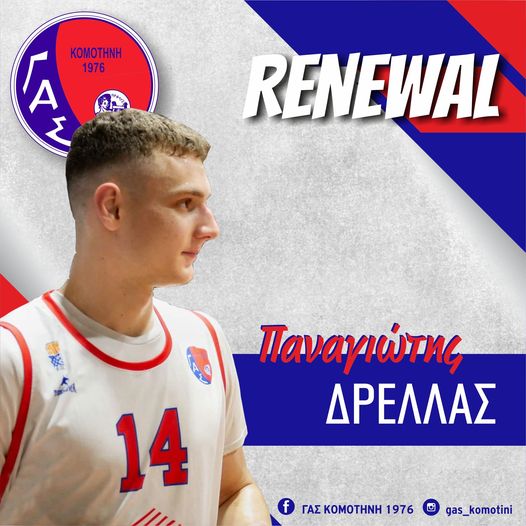 Ο ΓΑΣ Κομοτηνή ανακοινώνει την παραμονή του Παναγιώτη Δρέλλα στο ρόστερ της ομάδας και για την επόμενη αγωνιστική περίοδο.