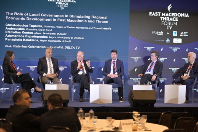 Στο πλαίσιο του Φόρουμ, ο Περιφερειάρχης Χριστόδουλος Τοψίδης συμμετείχε, την Παρασκευή 20 Μαρτίου 2026, σε πάνελ με θέμα «Ο Ρόλος της Τοπικής Αυτοδιοίκησης στην Τόνωση της Περιφερειακής Οικονομικής Ανάπτυξης στην Ανατολική Μακεδονία και Θράκη», με τους Ιωάννη Ανδρουλάκη, Πρόεδρο Πράσινου Ταμείου, Ευστράτιο Κοντό, Δήμαρχο Ξάνθης, Αδαμάντιο Παπαδόπουλο, Δήμαρχο Ορεστιάδας και Παναγιώτη Καλακίκο, Δήμαρχο Σουφλίου.