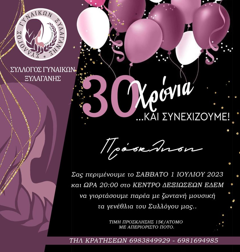“Έχουμε τη χαρά να γιορτάσουμε όλοι μαζί τα 30 χρόνια του Συλλόγου μας με όλους εσάς που μας στηρίζετε και μας το δείχνετε έμπρακτα όλα αυτά χρόνια!!!!