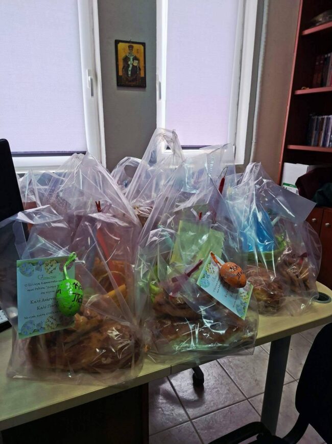 Επίσης, ευχαριστούμε θερμά τις εθελόντριές του συλλόγου, την κ. Κεραμιτσή Χάιδω, την κ. Αποστολίδου Βάσω και την κ. Δαλαγδή Κατερίνα, οι οποίες προσέφεραν τα πασχαλινά εδέσματα, τα οποία συνόδεψαν τα πασχαλινά καλάθια.