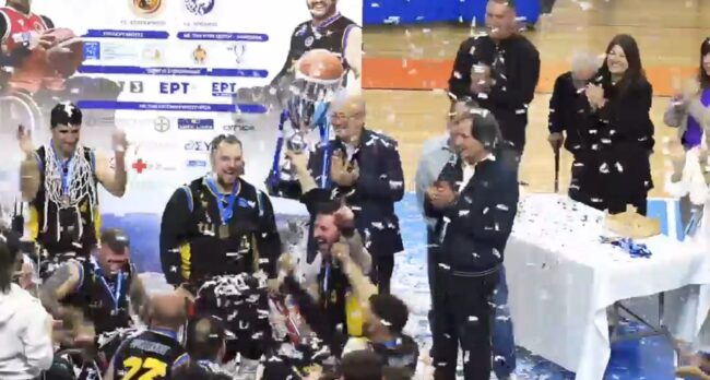 Με την λήξη οι θριαμβευτές ανέβηκαν στις μπασκέτες και έκοψαν τα διχτάκια του τελικού ξεσηκώνοντας το γήπεδο.